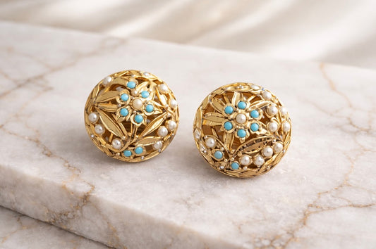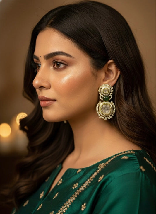 Royal Green & Pearl Kundan Choker Set with Statement Earrings
