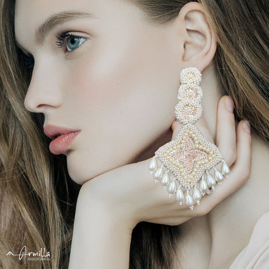 Handcrafted white beads and pearls drop danglersRegular price Rs. 2,000.00Regular priceUnit price per-