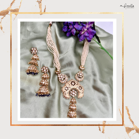 Ethereal Kundan Pearl Long Necklace Set – A Symphony of GraceRegular price Rs. 18,000.00Regular priceUnit price per-