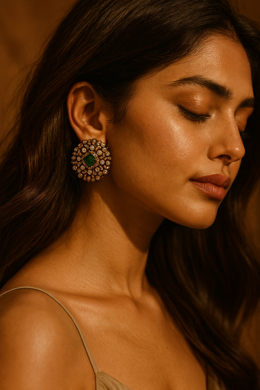 Antique Polki Stud Earrings with Emerald CenterRegular price Rs. 7,000.00Regular priceUnit price per-