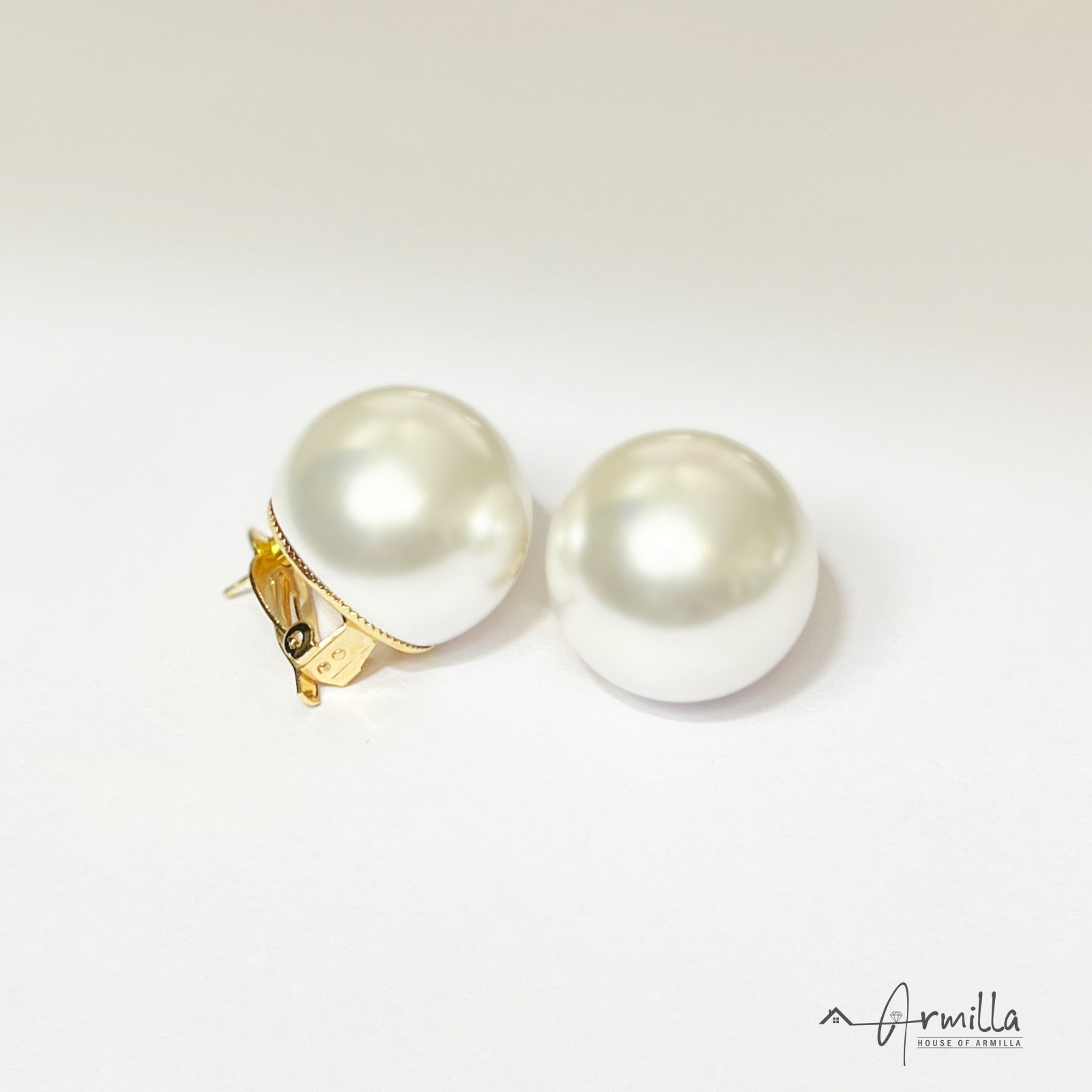 Oversized Pearl Stud Earrings, 25 mm sized white pearls