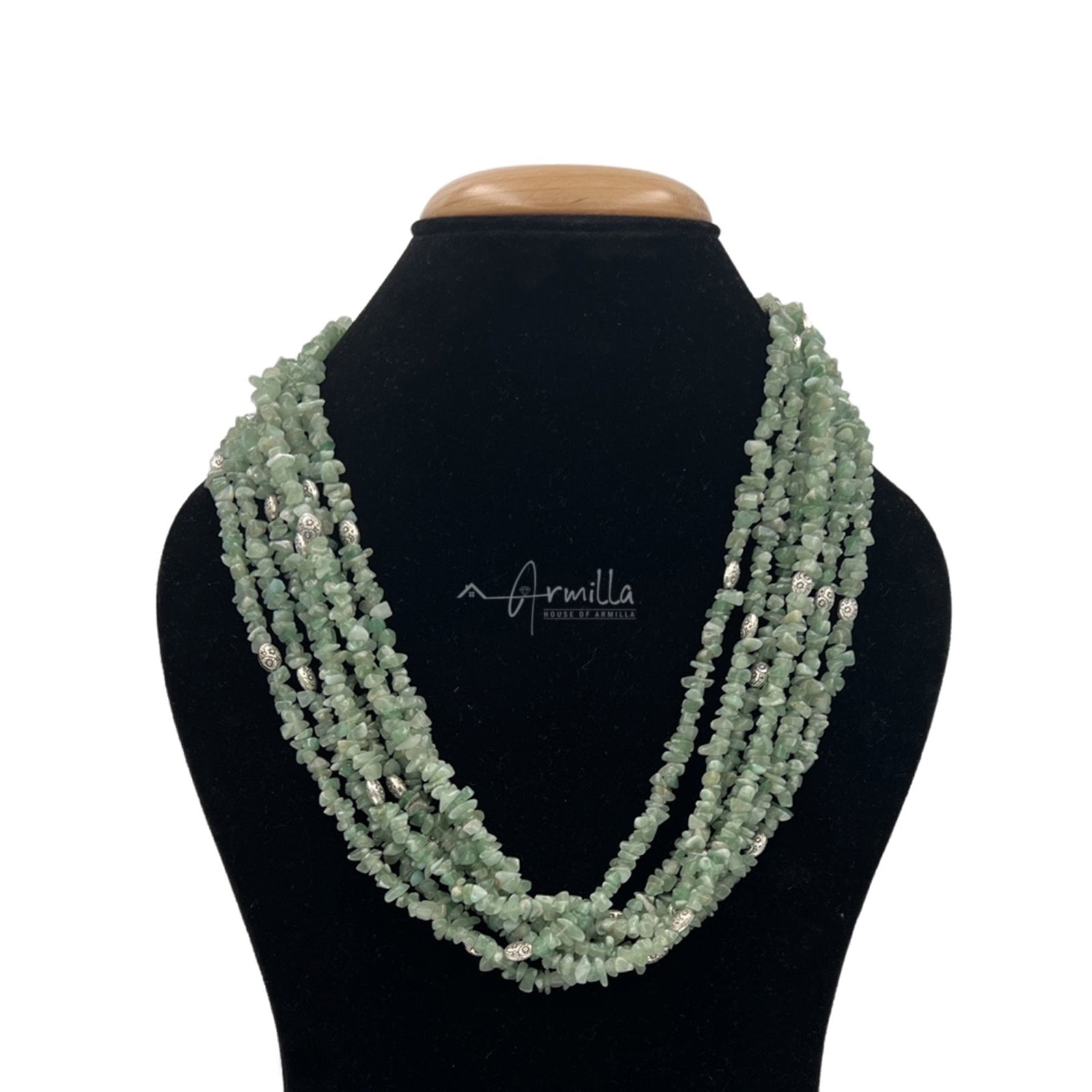 This boho chic multi-strand beaded necklace adds an instant charm to your attire. The dangly earrings along with this necklace has a trendy and feminine design which enhances your beauty further.
