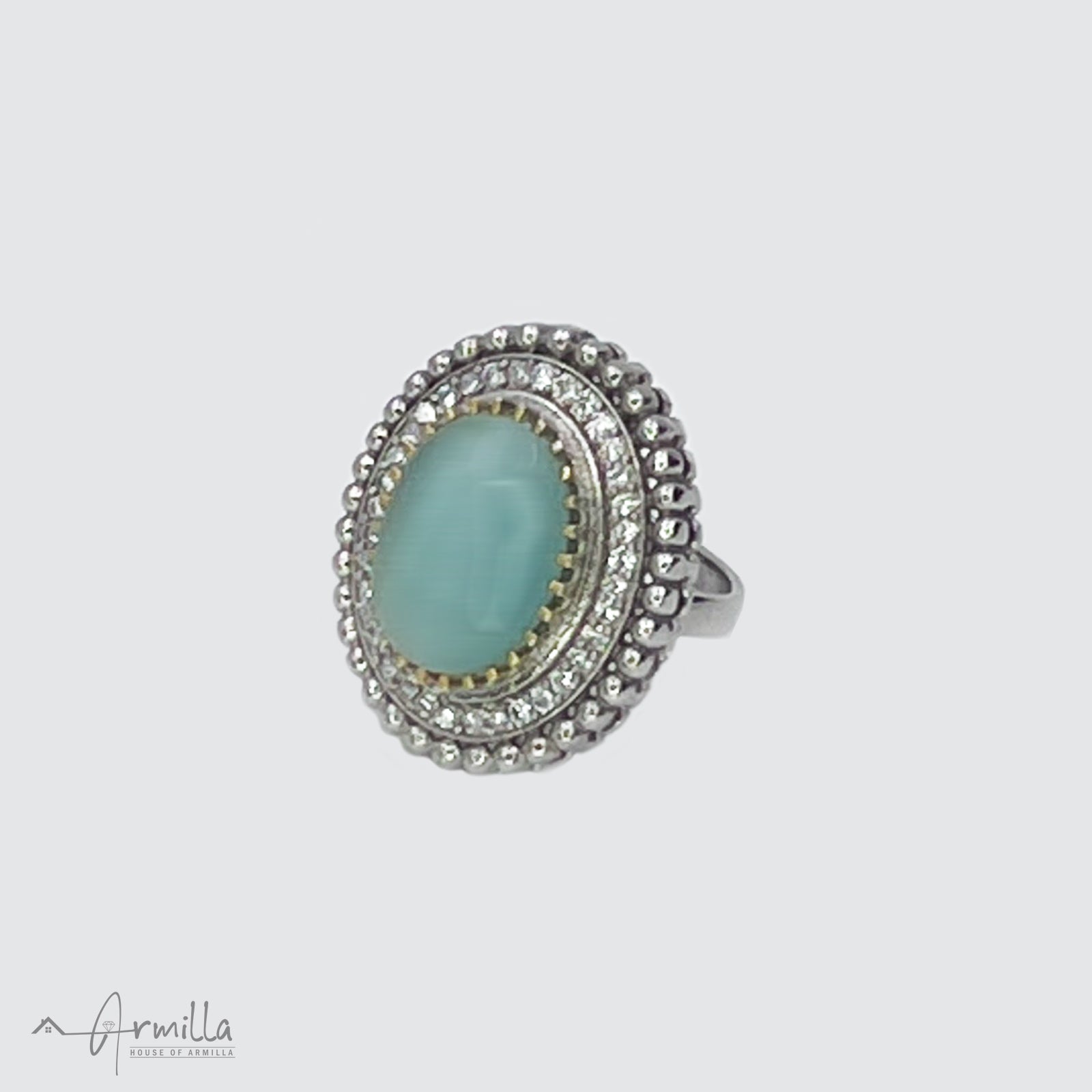 Mint Green Oval Shaped Stone Ring embellished with small CZ stones