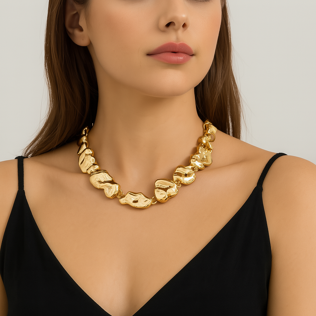Organic Sculpted Necklace: Smooth, free-form gold segments linked together for a fluid, art-inspired silhouette.