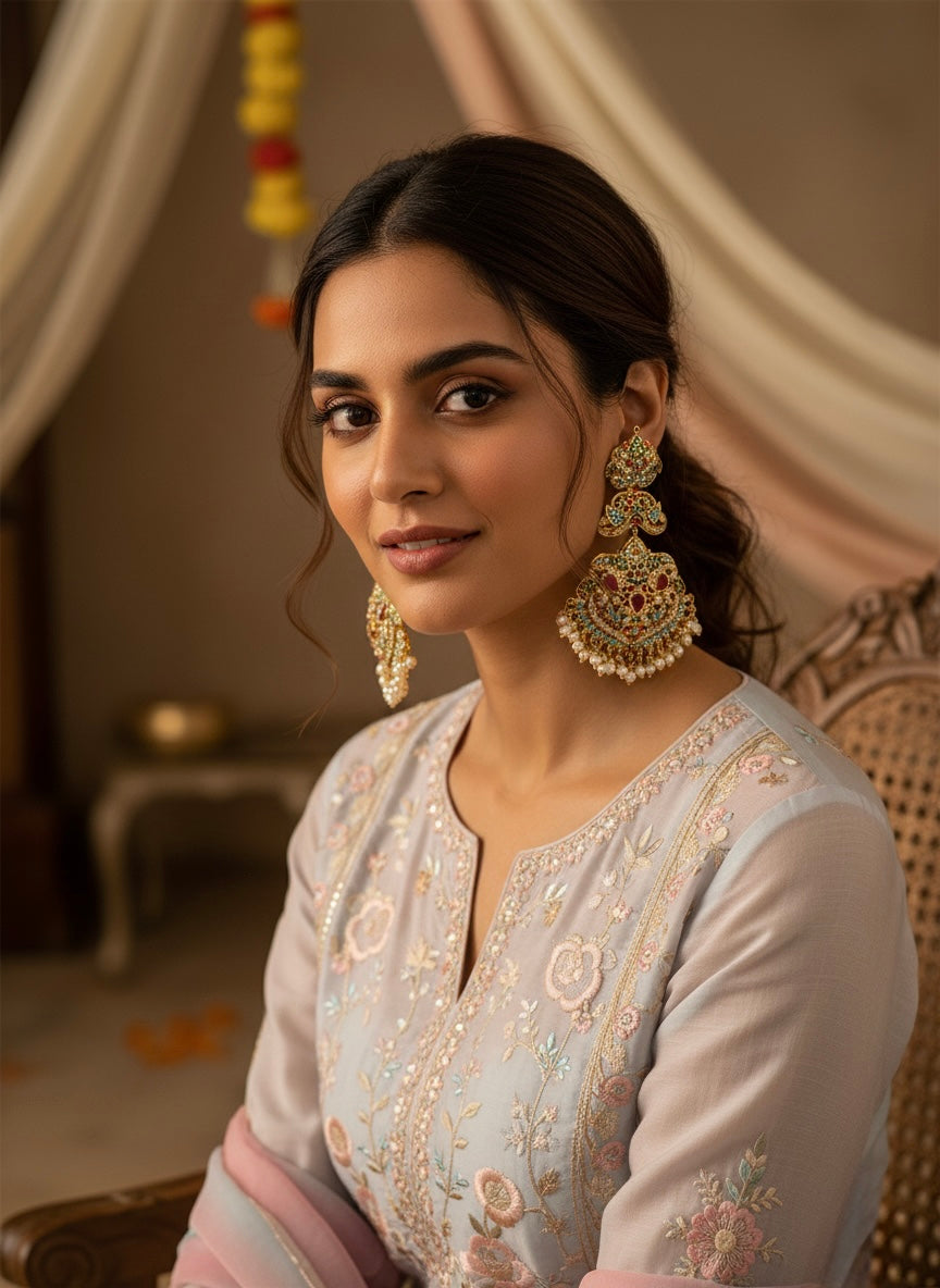 An explosion of colors, pearls, and intricate Jadau artistry - these earrings celebrate India’s rich jewellery legacy. A perfect heirloom-inspired piece for grand occasions.