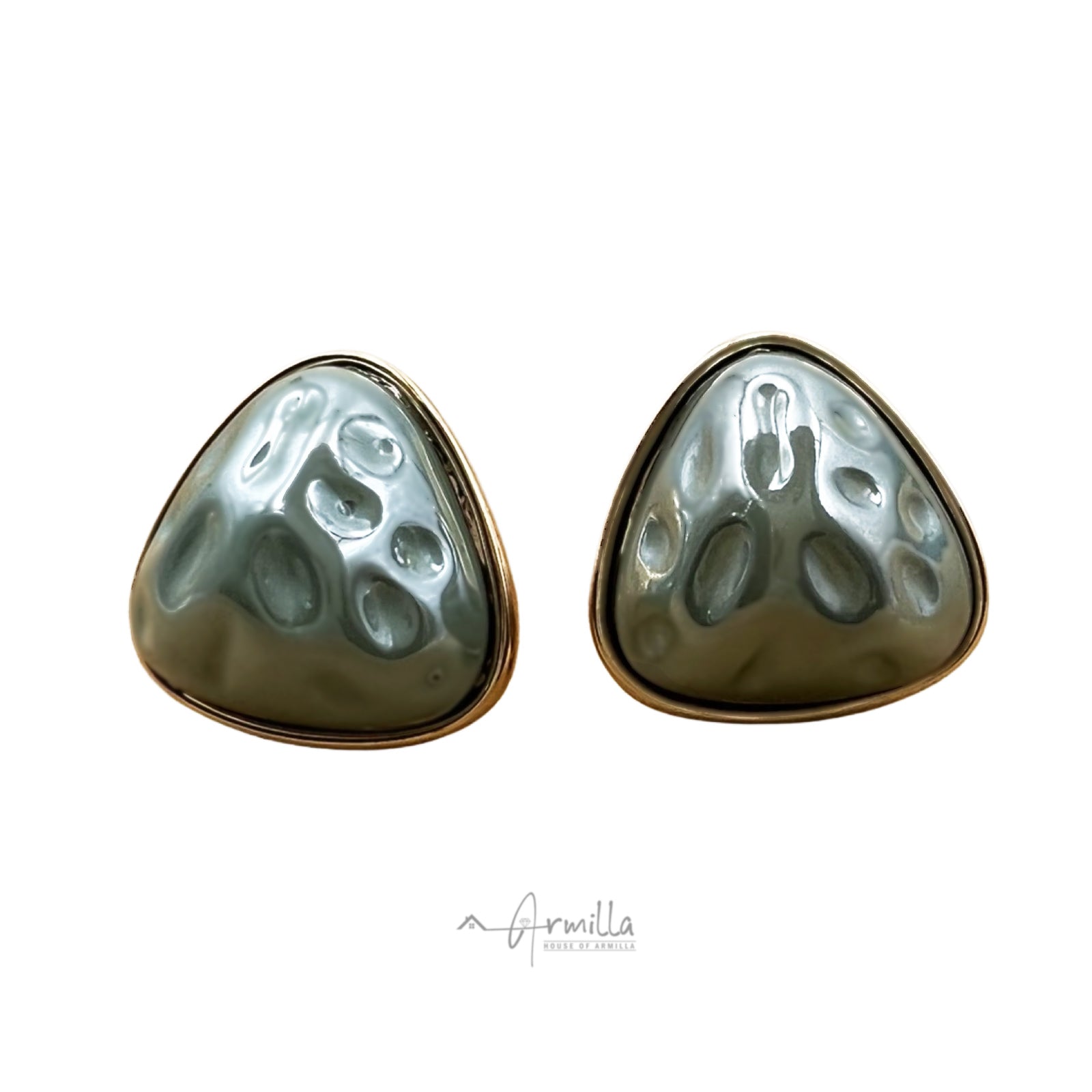 Hammered Pearl Triangle Shaped Mint Green Colored Earrings